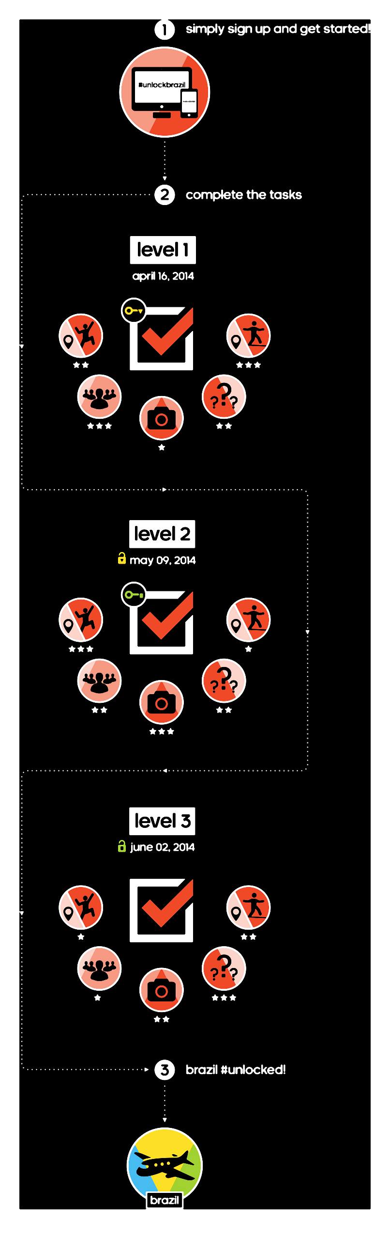 Konkurs trwa od 16 kwietnia do 16 czerwca 2014. Nagroda wygląda na pięciu uczestników z całego świata. Zwycięzcami zostaną Ci, którzy otrzymają najkorzystniejsze rezultaty. Jeśli posiadasz 18 lat zarejestruj się na: adidas.com/unlockbrazil. adidas pokryje wszystkie koszty związane z przelotami, zakwaterowaniem, dodatkowym transportem oraz wyżywieniem.