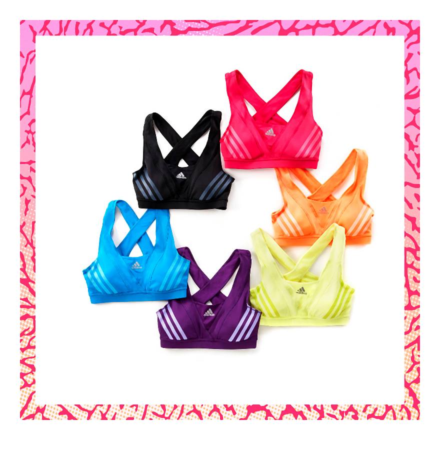 Kolekcja adidas wiosna/lato 2014 proponuje szeroki wybór sportowych biustonoszy o różnym wsparciu, tak by trafić w Twoje aktywne potrzeby. Produkty pełne żywych kolorów sprawią, że poczujesz się wyjątkowo podczas najcięższego wysiłku.