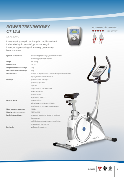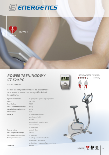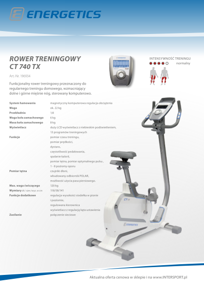 Ogromną zaletą rowerków treningowych jest to, że mogą na nim ćwiczyć osoby w każdym wieku ? również te, które przebyły w przeszłości różne kontuzje. Regularne jazdy pozwalają nie tylko zwiększyć wydajność układu krążeniowo-oddechowego, ale również wzmocnić mięśnie i spalić tkankę tłuszczową. Rowerek treningowy Energetics waży zaledwie 22 kg. Mierzy prędkość, czas treningu, przejechany dystans, tętno, częstotliwość pedałowania i ilość spalonych kalorii. Dzięki wszystkim tym funkcjom można ustawić odpowiedni program treningowy i dostosować go do indywidualnych potrzeb.