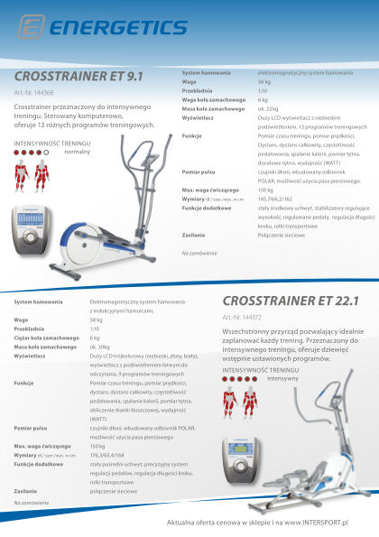 Specyfikacja oraz ceny modeli i sprzętu marki Energetics znajdują się w załączonej prezentacji.