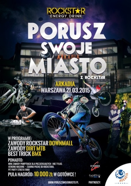 W pierwszy dzień wiosny, 21 marca 2015 roku w godzinach 12:00 – 22:30, największe centrum handlowe w Warszawie ? Arkadia, zmieni się w arenę dla ekstremalnej rowerowej jazdy! To wszystko za sprawą eventu Rockstar ?Porusz Swoje Miasto?, na którym niezwykłych wrażeń dostarczą zawodnicy światowego formatu z Polski i z zagranicy!